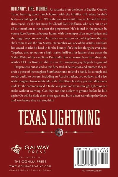 The toughest sheriff in Texas is about to meet his match. Outlawry. Fire. Murder. An arsonist is on the loose in Saddler County, Texas, burning down ranch houses with the families still asleep in their beds-including children. When the local mercantile is set on fire and his town threatened, it's the last straw for Sheriff Dell Hoffman, who sets out on an all-out manhunt to run down the perpetrator. He's joined in the pursuit by young Rose Parsons, a bounty hunter with the temper of an angry badger and the trigger finger to match. She has her own reasons for tracking down the man she's come to call the Fire Starter. Her mother was one of his victims, and Rose has vowed to take his head in for the bounty if it's the last thing she ever does. Together, they set out on a high- stakes, hellbent-for-leather chase across the Staked Plains of the vast Texas Panhandle. But no matter how hard they ride, neither Del nor Rose are able to run the rampaging psychopath to ground. Desperate to put an end to this fiery trail of destruction and murder, they recruit a posse of the toughest hombres around to lend a hand. It's a rough and rowdy outfit, to be sure, including an Apache tracker, two outlaws, and a few of the toughest lawmen this side of the Red River, but they put their differences aside for the common good. On the vast plains of Texas, though, lighting can strike without warning. Can they run this outlaw to ground before he kills again? Or will he elude them once again and burn down everything they know and love before they can stop him?