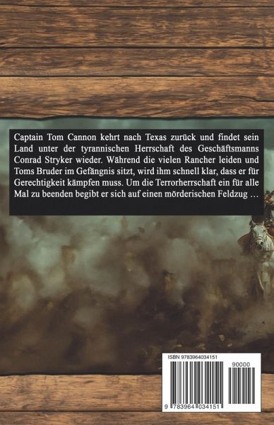 Rauchende Colts und echte Männer! Entdecken Sie jetzt die historische Western-Reihe ¿Das Gesetz des Westens¿ Klappentext: Captain Tom Cannon kehrt nach Texas zurück und findet sein Land unter der tyrannischen Herrschaft des Geschäftsmanns Conrad Stryker wieder. Während die vielen Rancher leiden und Toms Bruder im Gefängnis sitzt, wird ihm schnell klar, dass er für Gerechtigkeit kämpfen muss. Um die Terrorherrschaft ein für alle Mal zu beenden begibt er sich auf einen mörderischen Feldzug ¿ Über die Reihe Das Gesetz des Westens: Freuen Sie sich regelmäßig auf die spannendsten Western-Abenteuer diesseits des Mississippi! EK-2 Publishing hat für ¿Das Gesetz des Westens¿ die ganz großen Koryphäen des Western-Genres versammelt. Alfred Wallon, Peter Dubina und viele weitere Autoren katapultieren sie direkt ins Geschehen und bescheren Ihnen ein unvergessliches Leseerlebnis. Laden Sie Ihren Revolver und satteln Sie Ihren Hengst, denn es geht auf eine spannende Reise in den rauen Wilden Westen!