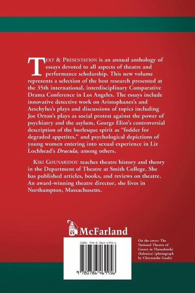 Text & Presentation is an annual anthology of essays devoted to all aspects of theatre and performance scholarship. This new volume represents a selection of the best research presented at the 35th international, interdisciplinary Comparative Drama Conference in Los Angeles. The essays include innovative detective work on Aristophanes's and Aeschylus's plays and discussions of topics including Joe Orton's plays as social protest against the power of psychiatry and the asylum, George Eliot's controversial description of the burlesque spirit as "fodder for degraded appetites," and psychological depictions of young women entering into sexual experience in Liz Lochhead's Dracula, among others.