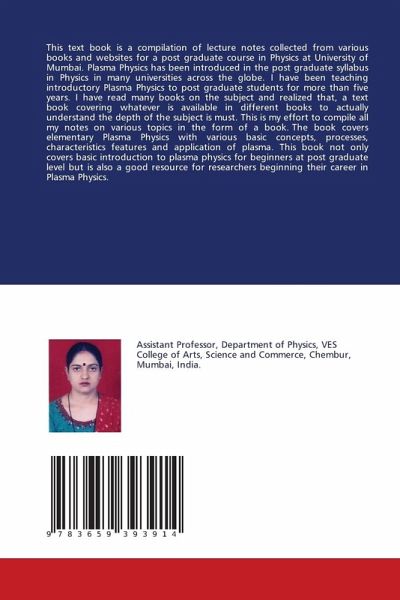 This text book is a compilation of lecture notes collected from various books and websites for a post graduate course in Physics at University of Mumbai. Plasma Physics has been introduced in the post graduate syllabus in Physics in many universities across the globe. I have been teaching introductory Plasma Physics to post graduate students for more than five years. I have read many books on the subject and realized that, a text book covering whatever is available in different books to actually understand the depth of the subject is must. This is my effort to compile all my notes on various topics in the form of a book. The book covers elementary Plasma Physics with various basic concepts, processes, characteristics features and application of plasma. This book not only covers basic introduction to plasma physics for beginners at post graduate level but is also a good resource for researchers beginning their career in Plasma Physics.
