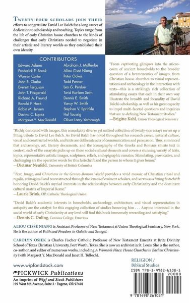Twenty-four scholars join their efforts to congratulate David Lee Balch for a long career of dedication to scholarship and teaching. Topics range from the life of early Christian house churches to the kinds of challenges that early Christians needed to negotiate in their artistic and literary worlds as they established their own identity. Contributors Edward Adams Frederick E Brenk Warren Carter John R. Clarke Everett Ferguson John T. Fitzgerald Richard A. Freund Ronald F. Hock Robin M. Jensen Davina C. Lopez Margaret Y. MacDonald Abraham J. Malherbe Aliou Cisse Niang Peter Oakes Todd Penner Leo G. Perdue Turid Karlsen Seim Dennis E. Smith Yancy W. Smith Stephen V. Sprinkle Hal Taussig Oliver Larry Yarbrough