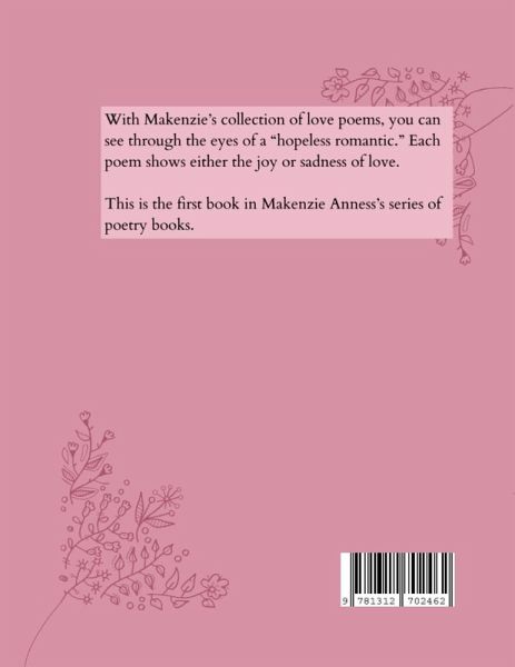 With Makenzie's collection of love poems, you can see through the eyes of a "hopeless romantic." Each poem shows either the joy or sadness of love. This is the first book in Makenzie Anness's series of poetry books.