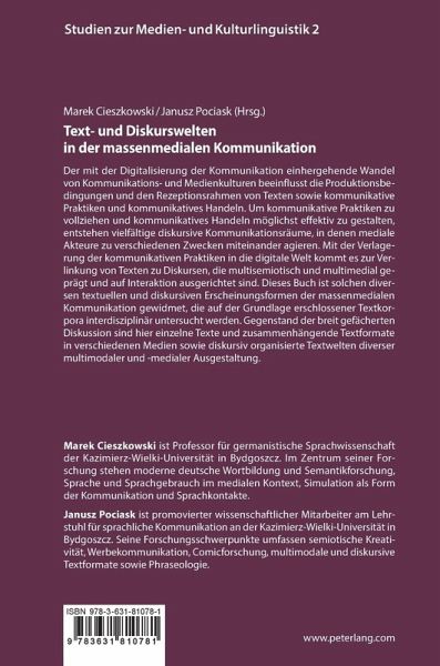 Der mit der Digitalisierung der Kommunikation einhergehende Wandel von Kommunikations- und Medienkulturen beeinflusst die Produktionsbedingungen und den Rezeptionsrahmen von Texten sowie kommunikative Praktiken und kommunikatives Handeln. Um kommunikative Praktiken zu vollziehen und kommunikatives Handeln möglichst effektiv zu gestalten, entstehen vielfältige diskursive Kommunikationsräume, in denen mediale Akteure zu verschiedenen Zwecken miteinander agieren. Mit der Verlagerung der kommunikativen Praktiken in die digitale Welt kommt es zur Verlinkung von Texten zu Diskursen, die multisemiotisch und multimedial geprägt und auf Interaktion ausgerichtet sind. Dieses Buch ist solchen diversen textuellen und diskursiven Erscheinungsformen der massenmedialen Kommunikation gewidmet, die auf der Grundlage erschlossener Textkorpora interdisziplinär untersucht werden. Gegenstand der breit gefächerten Diskussion sind hier einzelne Texte und zusammenhängende Textformate in verschiedenen Medien sowie diskursiv organisierte Textwelten diverser multimodaler und -medialer Ausgestaltung.