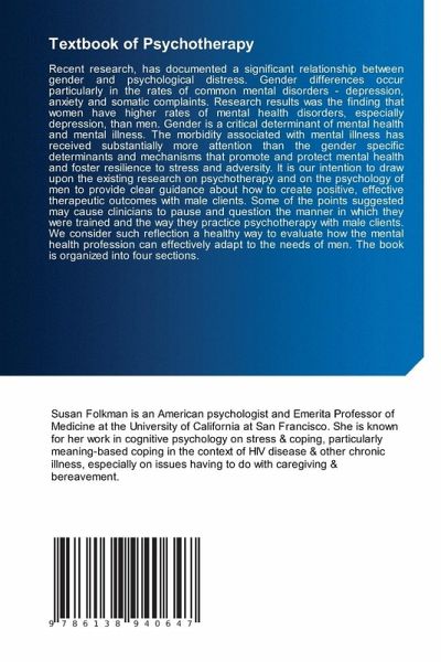 Recent research, has documented a significant relationship between gender and psychological distress. Gender differences occur particularly in the rates of common mental disorders - depression, anxiety and somatic complaints. Research results was the finding that women have higher rates of mental health disorders, especially depression, than men. Gender is a critical determinant of mental health and mental illness. The morbidity associated with mental illness has received substantially more attention than the gender specific determinants and mechanisms that promote and protect mental health and foster resilience to stress and adversity. It is our intention to draw upon the existing research on psychotherapy and on the psychology of men to provide clear guidance about how to create positive, effective therapeutic outcomes with male clients. Some of the points suggested may cause clinicians to pause and question the manner in which they were trained and the way they practice psychotherapy with male clients. We consider such reflection a healthy way to evaluate how the mental health profession can effectively adapt to the needs of men. The book is organized into four sections.