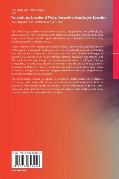 This book brings together empirical research and conceptual work on textbooks and education media from 13 countries and 17 disciplines. Along with textbook production, usage, and development, it also explores the interconnectedness of (educational) policy and teaching and learning materials. Further, the book offers insights into regional and local discourses (e.g. specific theories of Portuguese- and Spanish-speaking countries as well as Nordic countries, contrasting their theories with international literature), practices, and solutions with regard to teaching selected subjects at the pre-primary, primary, secondary, and tertiary level. This book also discusses the specific combinations of subjects (e.g. Physics, Biology, Geography, Swedish, English) and their subject-specific education (e.g. Physics Education or Didactics). Lastly, it examines the work of a number of early-career researchers, giving them a voice and bringing in fresh ideas currently being developed in various countries around the globe. This proceedings volume will appeal to publishers, subject educators in primary, secondary, and tertiary education, and academic researchers from the fields of textbooks, educational media and subject-specific education. Its international authorship and explicit focus on subject-specific particularities of educational media provide a unique and comprehensive overview.