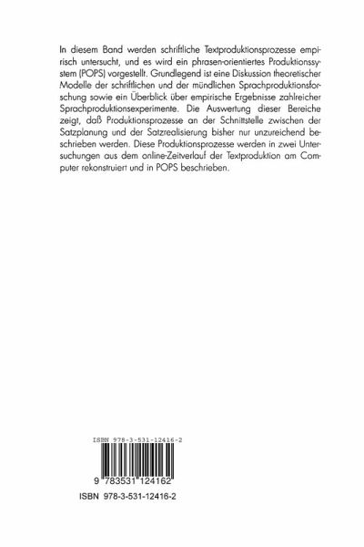 Das Zie1 des vorliegenden Buches ist es, zu einer Priizisierung der in der schriftlichen Textproduktion notwendigerweise auszufuhrenden P1anungs- und Rea1isierungsprozes sen beizutragen. In der Textproduktionsforschung ist eine Trennung des Bereiches der gesprochenen Sprache von dem Bereich der geschriebenen Sprache meist die Regel. In beiden Bereichen erarbeitete Forschungsergebnisse werden nur selten aufeinander bezogen und fUr eine integrative Theoriebi1dung genutzt. Mit diesem Buch soH gezeigt werden, daB ein beide Bereiche verbindendes Vorgehen zu interessanten FragesteHun gen und wichtigen Ergebnissen fUhren kann. Der empirische Untersuchungsgegenstand dieses Buches ist der schriftliche Text produktionsprozeB. Gegenuber den zah1reichen empirischen Untersuchungen zum mundlichen TextproduktionsprozeB sind empirische Untersuchungen zum schriftlichen TextproduktionsprozeB verhaltnismiillig se1ten. Die Fahigkeit, Texte schreiben zu konnen, ist fUr uns im Alltag jedoch von zentraler Bedeutung. Diese Bedeutung muB sich die Schreibforschung innerhalb der Textproduktionsforschung erst erarbeiten. Mit diesem Buch hoffe ich, die Bedeutungssteigerung der Schreibforschung vorantreiben zu konnen. Das vorliegende Buch resu1tiert aus meiner Dissertation Texte planen und produzie ren, mit der ich im Dezember 1991 an der Universitat Bielefeld promoviert habe. Die Idee fUr die hier vorgestellte experimentelle Methode, die freie kreative Textproduk tion an einem Computer, wurde in zah1reichen Diskussionen mit Jochen Musse1er, Eva Terhorst und Martina Hie1scher entwicke1t. Hierfiir mochte ich ihnen herz1ich danken. Viele hi1freiche Anregungen, bohrende Fragen und konstruktive Kritik verdanke ich meinen Kollegen Jorg Brummel, Bernd Hildebrandt, Annette Kobbe, Uwe Lauben stein, Gert Rickheit, Ulrich Schade, Lorenz Siche1schmidt und Hans Strohner.