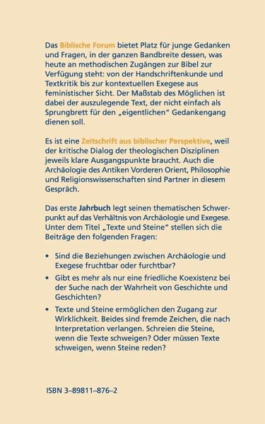 Das erste Jahrbuch legt seinen thematischen Schwerpunkt auf das Verhältnis von Archäologie und Exegese.