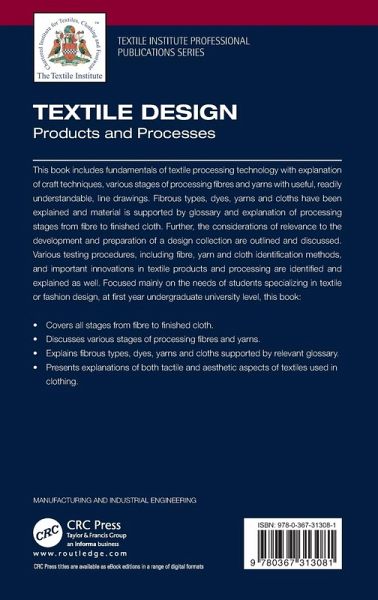1. Introduction. 2. Textile fibres. 3. Yarns. 4. Weaving. 5. Knitting and other forms of yarn manipulation. 6. Felt, bark and other nonwovens. 7. Dyes and their application. 8. Block-printing and resist-dyeing techniques. 9. Finishing. 10. Motifs and patterns. 11. Design development and presentation. 12. Testing and appraisal. 13. Further considerations. 14. In conclusion. Glossary.