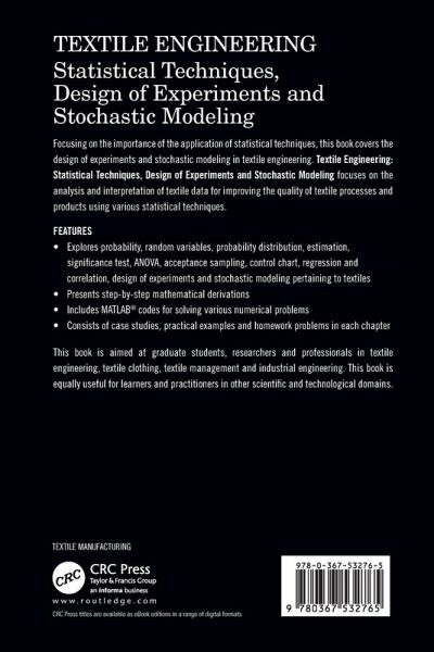 Overall theme of the book is analysis and interpretation of the textile data for improving the quality of textile process and product using various statistical techniques. This volume covers statistical techniques, design of experiments and stochastic modeling in textile engineering supported by practical examples and end-of-chapter exercises.