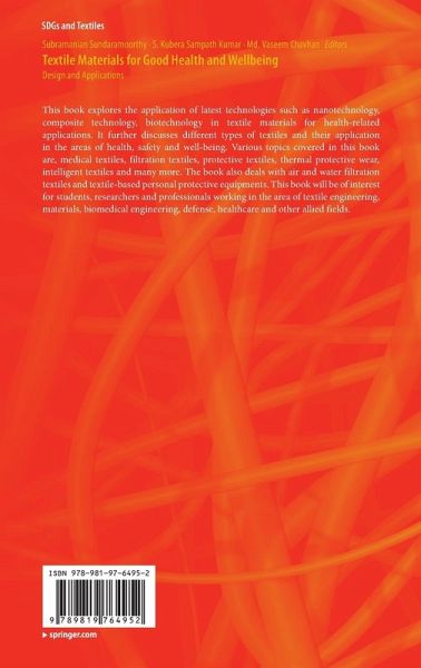 This book explores the application of latest technologies such as nanotechnology, composite technology, biotechnology in textile materials for health-related applications. It further discusses different types of textiles and their application in the areas of health, safety and well-being. Various topics covered in this book are, medical textiles, filtration textiles, protective textiles, thermal protective wear, intelligent textiles and many more. The book also deals with air and water filtration textiles and textile-based personal protective equipments. This book will be of interest for students, researchers and professionals working in the area of textile engineering, materials, biomedical engineering, defense, healthcare and other allied fields.