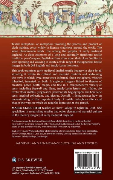 Identifies and analyses a wide range of textile metaphors and imagery from peace-weaving in Beowulf to word-crafting in Elene. Textile metaphors, or metaphors involving the process and product of cloth-making, occur widely in literary traditions around the world. The same phenomenon holds true among the peoples of early medieval England. As close observers of a long and culturally significant textile tradition, pre-Conquest English writers drew upon their close familiarity with spinning and weaving to create a wide range of metaphorical textile images in both Old English and Anglo-Latin literature. This book examines early medieval English textile imagery in close detail, situating it within its cultural and material contexts and addressing the ways in which lived experience informed these metaphors, whether inherited, invented, or both. It explores imagery linked to themes of creation, peace, death, magic, and fate in a comprehensive variety of texts, including Beowulf and Elene, Anglo-Latin letters and riddles, the Exeter Book riddles, prognostics, penitentials, hagiographic and homiletic texts, medical collections, and glosses. Overall, it demonstrates how an understanding of this important body of textile metaphors alters and shapes the ways in which we read the literature of this period.
