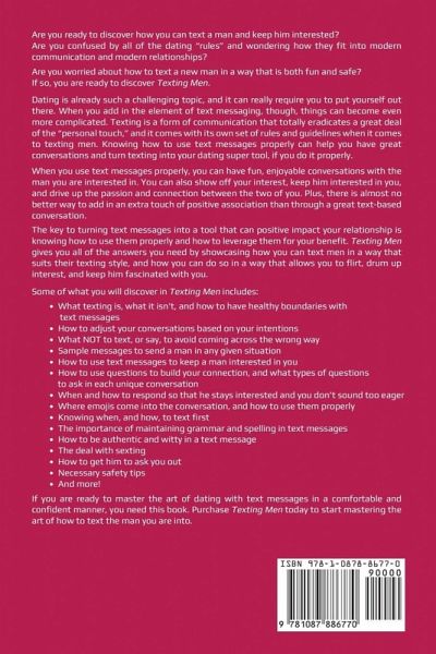 Are you ready to discover how you can text a man and keep him interested?Are you confused by all of the dating "rules" and wondering how they fit into modern communication and modern relationships? Are you worried about how to text a new man in a way that is both fun and safe?If so, you are ready to discover Texting Men.