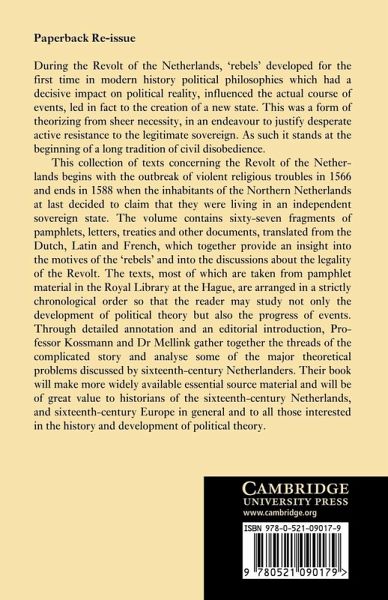 Professor Kossman and Dr Mellink gather together the threads of the complicated story and analyse some of the major theoretical problems discussed by sixteenth-century Netherlands