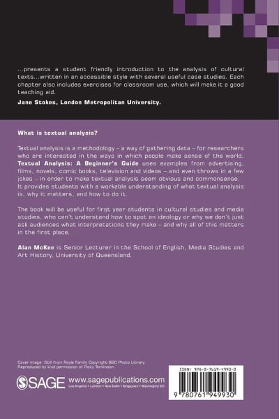 `Alan McKee presents a student friendly introduction to the analysis of cultural texts. The book highlights the cultural differences in interpretation with an array of fascinating examples. Textual Analysis is written in an accessible style with several useful case studies. Each chapter also includes exercises for classroom' - Jane Stokes, London Metropolitan University