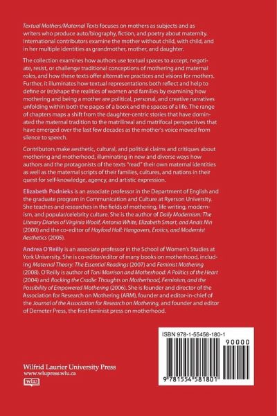 Textual Mothers/Maternal Texts focuses on mothers as subjects and as writers who produce auto/biography, fiction, and poetry about maternity. International contributors examine the mother without child, with child, and in her multiple identities as grandmother, mother, and daughter. The collection examines how authors use textual spaces to accept, negotiate, resist, or challenge traditional conceptions of mothering and maternal roles, and how these texts offer alternative practices and visions for mothers. Further, it illuminates how textual representations both reflect and help to define or (re)shape the realities of women and families by examining how mothering and being a mother are political, personal, and creative narratives unfolding within both the pages of a book and the spaces of a life. The range of chapters maps a shift from the daughter-centric stories that have dominated the maternal tradition to the matrilineal and matrifocal perspectives that have emerged over the last few decades as the mother's voice moved from silence to speech. Contributors make aesthetic, cultural, and political claims and critiques about mothering and motherhood, illuminating in new and diverse ways how authors and the protagonists of the texts "read" their own maternal identities as well as the maternal scripts of their families, cultures, and nations in their quest for self-knowledge, agency, and artistic expression.
