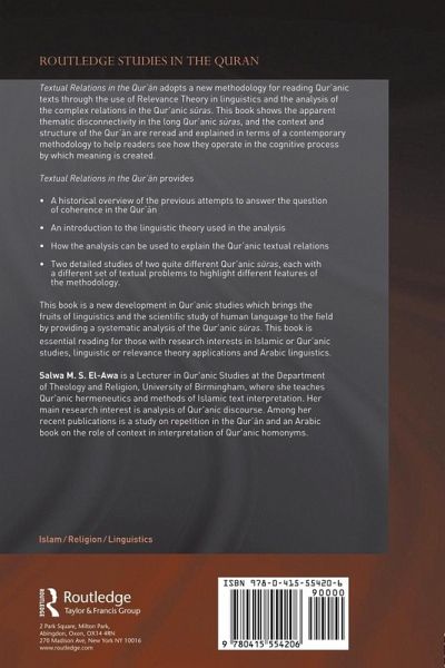 Representing a new development in the study of Qur'anic text, this book tackles the issue of Qur'anic text structure by fusing the fields of linguistics and Qur'anic studies. The Qur'an contains many long suras covering diverse topics but with no apparent common context within which such variety can be explained. This book proposes a new explanation of Qur'anic text structure, arguing that the long suras have structure that are explicable within a framework for the mechanisms of human verbal communication. Through a systematic step-by-step analysis of the cognitive process involved in verbal communication and comprehension of text, this work provides interesting and useful insights into methods of analysis, mechanisms and dynamics of the Qur'anic text structure. The unique application of a sophisticated linguistic theory to the Qur'an introduces an entirely new way of reading the Qur'an and with detailed analysis of two Qur'anic passages the book presents a solid working out of the theory that will be accessible to both linguists and scholars of the Qur'an.