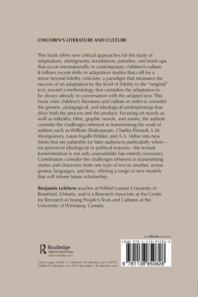 This book offers new critical approaches for the study of adaptations, abridgments, translations, parodies, and mash-ups that occur internationally in contemporary children's culture. It follows recent shifts in adaptation studies that call for a move beyond fidelity criticism, a paradigm that measures the success of an adaptation by the level of fidelity to the "original" text, toward a methodology that considers the adaptation to be always already in conversation with the adapted text. This book visits children's literature and culture in order to consider the generic, pedagogical, and ideological underpinnings that drive both the process and the product. Focusing on novels as well as folktales, films, graphic novels, and anime, the authors consider the challenges inherent in transforming the work of authors such as William Shakespeare, Charles Perrault, L.M. Montgomery, Laura Ingalls Wilder, and A.A. Milne into new forms that are palatable for later audiences particularly when-for perceived ideological or political reasons-the textual transformation is not only unavoidable but entirely necessary. Contributors consider the challenges inherent in transforming stories and characters from one type of text to another, across genres, languages, and time, offering a range of new models that will inform future scholarship.