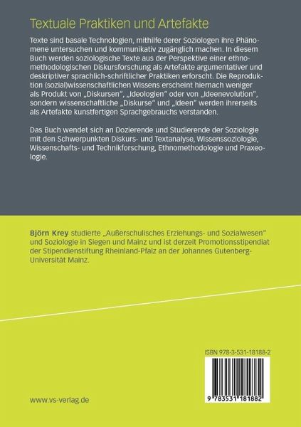 Texte sind basale Technologien, mithilfe derer Soziologen ihre Phänomene untersuchen und kommunikativ zugänglich machen. In diesem Buch werden soziologische Texte aus der Perspektive einer ethnomethodologischen Diskursforschung als Artefakte argumentativer und deskriptiver sprachlich-schriftlicher Praktiken erforscht. Die Reproduktion (sozial)wissenschaftlichen Wissens erscheint hiernach weniger als Produkt von "Diskursen", "Ideologien" oder von "Ideenevolution", sondern wissenschaftliche "Diskurse" und "Ideen" werden ihrerseits als Artefakte kunstfertigen Sprachgebrauchs verstanden.