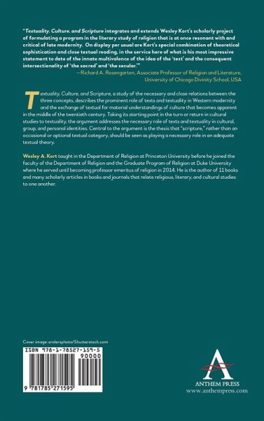 "Textuality, Culture and Scripture," a study of the necessary and close relations between the three concepts, argues for the necessary role of textuality in culture and the inadequacy of a cultural theory based on materialism. It explores the standing and role of scripture in textual theory and in cultural, group and personal identities.
