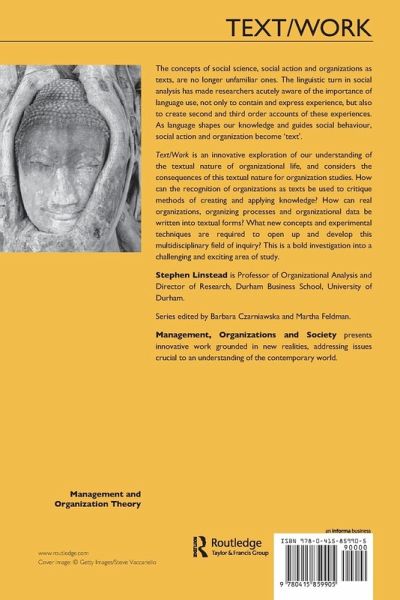 The concepts of social sciences, social action and organizations as texts, are no longer unfamiliar ones. The use of language in social analysis has made researchers acutely aware of the importance of language use, not only to contain and express experience but also to create second order accounts of these experiences. This way of using language to shape our knowledge and guide social action, it is urged, makes social action and organization a 'text'. Text/Work is an innovative exploration of our understanding of the textual nature of organizational life, and considers the consequences of textual nature for organization studies. How can organizations be profitably written into textual forms? This is a bold investigation into a challenging and exciting area of study.