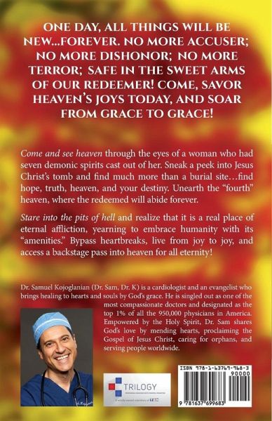 One day, all things will be new...forever. No more accuser; no more dishonor; no more terror; safe in the sweet arms of our Redeemer! Come, savor heaven's joys today, and soar from grace to grace! Come and see heaven through the eyes of a woman who had seven demonic spirits cast out of her. Sneak a peek into Jesus Christ's tomb and find much more than a burial site...find hope, truth, heaven, and your destiny. Unearth the "fourth" heaven, where the redeemed will abide forever. Stare into the pits of hell and realize that it is a real place of eternal affliction, yearning to embrace humanity with its "amenities." Bypass heartbreaks, live from joy to joy, and access a backstage pass into heaven for all eternity!