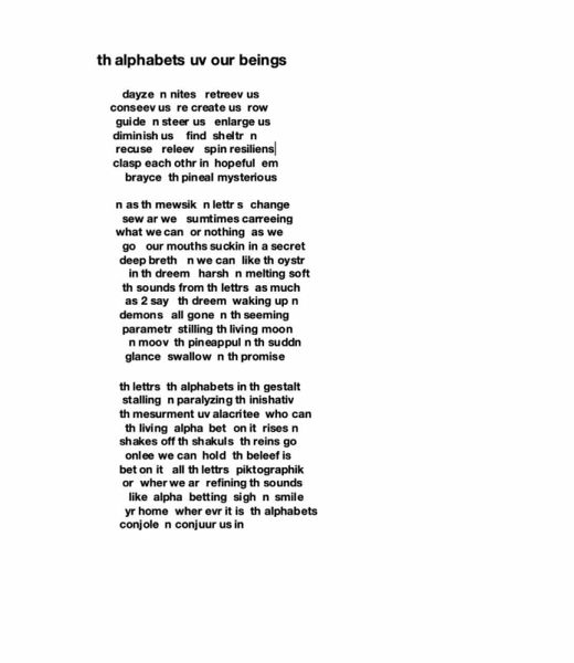 a novel uv pomes threding thru each othr th main charaktrs langwage n all uv us hedding off in all direksyuns ths book asks is langwage lost wev had creativ langwage almost 7 thousand yeers we still dont undr stand each othr veree well dew we want 2 thru th mysteree loves n rapturs speek th book uv lost passwords 1 is the new book from beloved Canadian poet bill bissett, recent recipient of the Order of Canada. It expands on his multivalent and long-standing poetic practice by rearticulating the novel as a radiant field of sound, image, story, memory, dream, and fantasy. It criss-crosses…mehr
