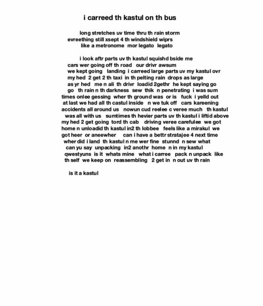 a novel uv pomes threding thru each othr th main charaktrs langwage n all uv us hedding off in all direksyuns ths book asks is langwage lost wev had creativ langwage almost 7 thousand yeers we still dont undr stand each othr veree well dew we want 2 thru th mysteree loves n rapturs speek th book uv lost passwords 1 is the new book from beloved Canadian poet bill bissett, recent recipient of the Order of Canada. It expands on his multivalent and long-standing poetic practice by rearticulating the novel as a radiant field of sound, image, story, memory, dream, and fantasy. It criss-crosses geographies, hopping on planes and between planes to get to th breth uv th pome and everywhere else. th book uv lost passwords 1 oxygenates the brain and soul.