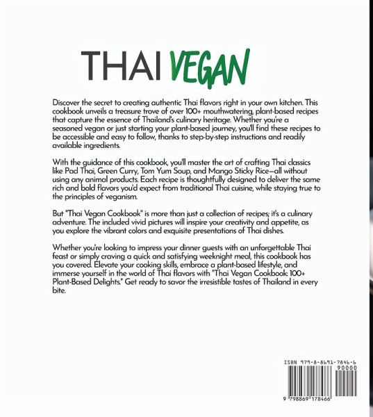 Experience the exotic and tantalizing flavors of Thailand in the "Thai Vegan Cookbook," your passport to over 100 plant-based, irresistible recipes that capture the essence of authentic Thai cuisine. Uncover the secrets of Thai cooking with step-by-step instructions that ensure every dish you create is a culinary masterpiece, even for those new to Thai cuisine. Say goodbye to the hunt for exotic ingredients. This cookbook focuses on using easy-to-find items, so you can enjoy the bold and vibrant flavors of Thailand without the hassle. Immerse yourself in the world of Thai cuisine with recipes that range from spicy curries and aromatic noodle dishes to delectable desserts, all tailored to your plant-based lifestyle. Let your taste buds travel to the bustling streets of Bangkok and the serene beaches of Phuket as you savor the delightful flavors, colors, and textures of Thai vegan dishes, all beautifully captured in accompanying pictures. Whether you're a seasoned Thai food enthusiast or a beginner, this cookbook offers something for everyone, making it a breeze to create perfect, authentic Thai meals in your own kitchen. Elevate your culinary repertoire, embrace the richness of Thai culture, and nourish your body with the wholesome, plant-based goodness of Thailand's finest dishes, all in one captivating cookbook. With "Thai Vegan Cookbook," you have the key to unlocking the secrets of Thai cuisine while honoring your commitment to a healthy, compassionate, and flavorful plant-based lifestyle.