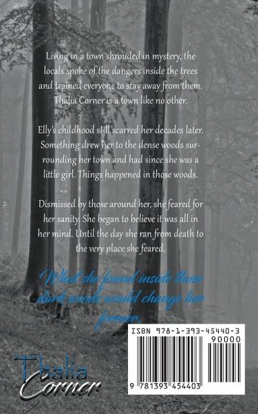 Living in a town shrouded in mystery, the locals spoke of the dangers inside the trees and trained everyone to stay away from them. Thalia Corner is a town like no other. Elly's childhood still scarred her decades later. Something drew her to the dense woods surrounding her town and had since she was a little girl. Things happened in those woods. Dismissed by those around her, she feared for her sanity. She began to believe it was all in her mind… Until the day she ran from death to the very place she feared. What she found inside those dark woods would change her forever.