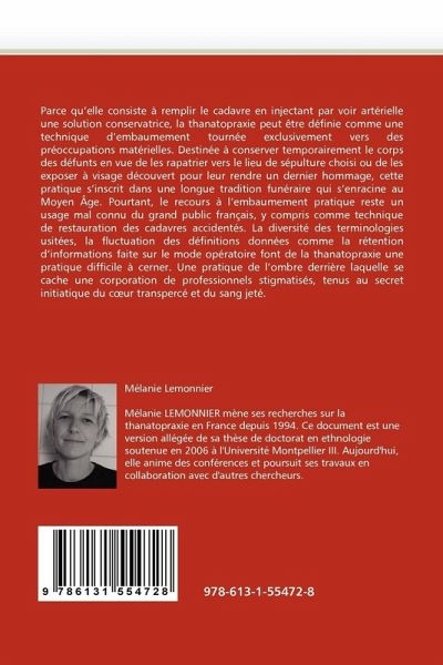 Parce qu'elle consiste à remplir le cadavre en injectant par voir artérielle une solution conservatrice, la thanatopraxie peut être définie comme une technique d'embaumement tournée exclusivement vers des préoccupations matérielles. Destinée à conserver temporairement le corps des défunts en vue de les rapatrier vers le lieu de sépulture choisi ou de les exposer à visage découvert pour leur rendre un dernier hommage, cette pratique s'inscrit dans une longue tradition funéraire qui s'enracine au Moyen Âge. Pourtant, le recours à l'embaumement pratique reste un usage mal connu du grand public français, y compris comme technique de restauration des cadavres accidentés. La diversité des terminologies usitées, la fluctuation des définitions données comme la rétention d'informations faite sur le mode opératoire font de la thanatopraxie une pratique difficile à cerner. Une pratique de l'ombre derrière laquelle se cache une corporation de professionnels stigmatisés, tenus au secret initiatique du c ur transpercé et du sang jeté.