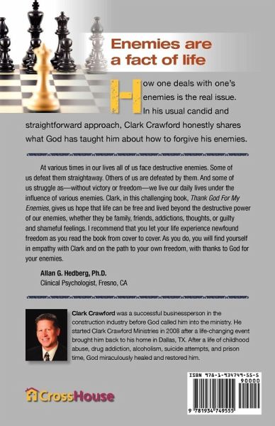 Enemies are a fact of life How one deals with one's enemies is the real issue. In his usual candid and straightforward approach, Clark Crawford honestly shares what God has taught him about how to forgive his enemies.