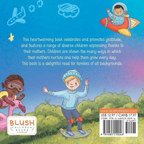Let's celebrate and thank mommies for everything they do. This heartwarming book celebrates and promotes gratitude and features a range of diverse children expressing thanks to their mothers. Perfect for children ages 2 and up, new moms, baby shower gifts, and Mother's Day. Through charming illustrations, children are shown the many ways in which their mothers nurture them and help them grow every day. With a focus on the power of gratitude and the unique bond between mothers and children, this book is a delightful read for families of all backgrounds. Buy your copy now before the price goes up.