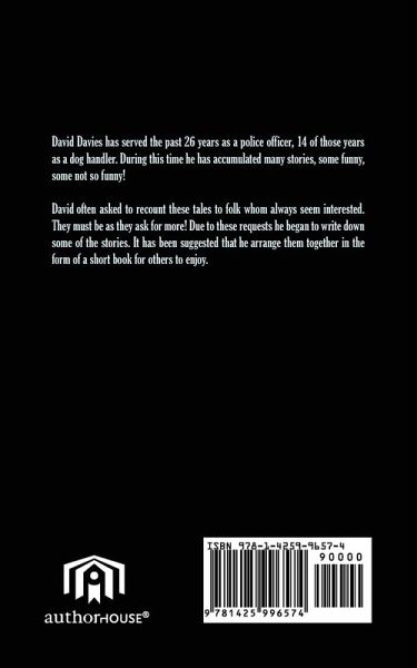 David Davies has served the past 26 years as a police officer, 14 of those years as a dog handler. During this time he has accumulated many stories, some funny, some not so funny! David often asked to recount these tales to folk whom always seem interested. They must be as they ask for more! Due to these requests he began to write down some of the stories. It has been suggested that he arrange them together in the form of a short book for others to enjoy.