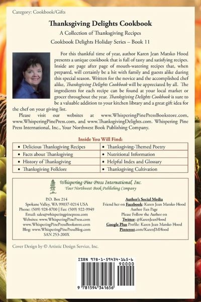 For this thankful time of year, author Karen Jean Matsko Hood presents a unique cookbook that is full of tasty and satisfying recipes. Inside are page after page of mouth-watering recipes that, when prepared, will certainly be a hit with family and guests alike during this special season. Written for the novice and the accomplished chef alike, Thanksgiving Delights Cookbook will be appreciated by all. The ingredients for each recipe can be found at your local market or grocer throughout the year. Thanksgiving Delights Cookbook is sure to be a valuable addition to your kitchen library and a great gift idea for the chef on your giving list.