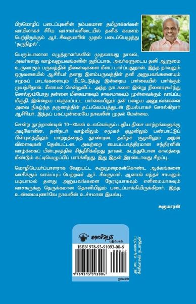 Tharunizhal' is the first work by R. Sivakumar, who has gained significant attention amongst avid readers through his reliable Tamil translation of works from other languages. For most writers, the first novel is a retelling of their life experiences, especially the memories of the period in which their individual personalities took shape. This novel too is an attempt by the author to capture the personal and social experiences of his youth and look at them from today's perspective. While recounting one's past, the urge to present oneself in a heroic and ambitious way is extremely compelling and often overpowering. That this novel does not fall into this trap, but relates those experiences in the atmosphere of the moment is the first sign of the novel's greatness. The 70s and 80s laid the foundations for several new directions and pathways. They triggered changes in the personal, social and cultural life and environment of the people. The effects were felt in the Tamil context as well. That this novel attempts to reconstruct this past in a nuanced and comprehensive manner is its second sign of greatness. R. Sivakumar narrates his experiences in a simple, direct and intimate manner that fully absorbs readers; this realism is the ultimate sign of greatness in this novel.