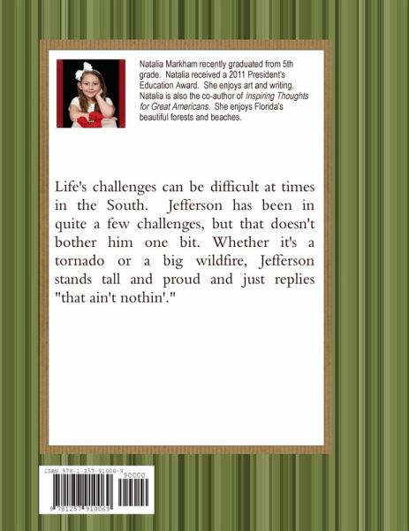 Life's challenges can be difficult at times in the South. Jefferson has been in quite a few challenges. but that doesn't bother him one bit. Whether it's a tornado or a big wildfire, Jefferson stands tall and proud and just replies ""that ain't nothin'.""