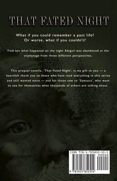 What if you could remember a past life? Or worse, what if you couldn't? Find out what happened on the night Abigail was abandoned at the orphanage from three different perspectives. This prequel novella, 'That Fated Night', is my gift to you - a heartfelt thank you to those who have read everything in this series and still wanted more - and for those new to 'Samsara', who want to see for themselves what thousands of others are talking about.