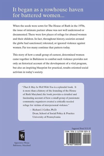 When the seeds were sown for The House of Ruth in the 1970s, the issue of intimate partner abuse was not well understood or documented. There were few places of refuge for abused women and their children. In fact, throughout history, societies around the globe had sanctioned, tolerated, or ignored violence against women. Far too many continue that pattern today. This story of how a small group of earnest, determined women came together in Baltimore to combat such violence provides not only an historical account of the development of a vital program, but also an inspiring blueprint for practical, results-oriented social activism in today's society.
