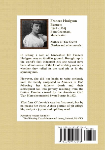 In telling a tale of Lancashire life Frances Hodgson was on familiar ground. Brought up in the world's first industrial city she would have been all too aware of the lot of working women - whether they toiled in the coal pit or a spinning mill. However, she did not begin to write until the family migrated to America following her father's death and their subsequent fall into poverty as a result of the Lancashire Cotton Famine caused by the American Civil War. Here she married Swan Burnet in 1872. That Lass O' Lowrie's was her first novel, but by no means her worst. A dark portrait of pit village life and yet a joyous and uplifting read. Published to raise funds for the Working Class Movement Library, Salford, M5 4WX.