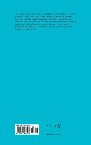 Although best known for Little Lord Fauntleroy and The Secret Garden, Frances Hodgson Burnett was considered one of the leading writers in America on the strength of her adult novels, which made her name in the 1870s and 1880s. Ripe for rediscovery, Bello is proud to bring a select group of these classic novels back into print.That Lass O' Lowrie's was Frances Hodgson Burnett's first novel. A tale of Lancashire, her chosen heroine is pit-girl. Burnett uses the novel to explore questions of social inequality and injustice, with much of the material drawn from real life. Serialised in Scribner's Monthly before publication as a book, and first published in April 1877, That Lass O' Lowrie's won unanimous praise from the critics.