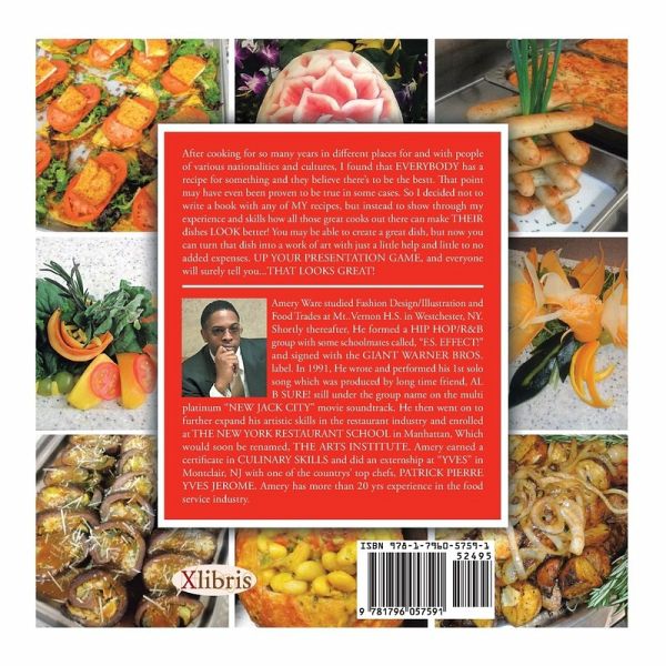 After cooking for so many years in different places for and with people of various nationalities and cultures, I found that EVERYBODY has a recipe for something and they believe there's to be the bestt. That point may have even been proven to be true in some cases. So I decided not to write a book with any of MY recipes, but instead to show through my experience and skills how all those great cooks out there can make THEIR dishes LOOK better! You may be able to create a great dish, but now you can turn that dish into a work of art with just a little help and little to no added expenses. UP YOUR PRESENTATION GAME, and everyone will surely tell you...THAT LOOKS GREAT!