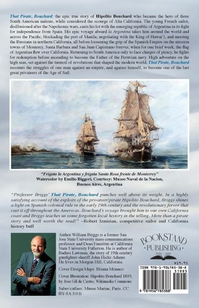 That Pirate, Bouchard: the epic true story of Hipolito Bouchard who became the hero of three South American nations, while considered the scourge of Alta California. The young French sailor, disillusioned after the Napoleonic wars, casts his lot with the emerging republic of Argentina in its fight for independence from Spain. His epic voyage aboard la Argentina takes him around the world and across the Pacific, blockading the port of Manila, negotiating with the King of Hawai'i, and meeting the Russians in northern California, all before loosening the grip of the Spanish Empire on the mission towns of Monterey, Santa Barbara and San Juan Capistrano forever, when for one brief week, the flag of Argentina flew over California. Returning to South America only to face charges of piracy, he fights for redemption before ascending to become the Father of the Peruvian navy. High adventure on the high seas, set against the turmoil of revolutions that shaped the modern world, That Pirate, Bouchard recounts the struggles of one man against an empire, and against himself, to become one of the last great privateers of the Age of Sail.