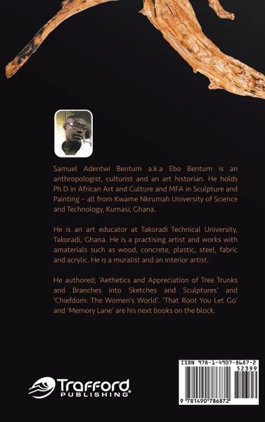 Bentum's book, That Root You Left Behind, expresses his creative energy in contemporary African sculpture dimensions. His found and fixed rootworks explain some concepts that support the African social, secular, political, and economic influences-a relation of a real-life situation and obscurity.