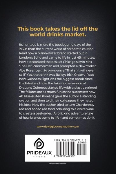 Discover how some of the world's most iconic drinks brands came to life - or didn't. Celebrated creative and marketing guru, David Gluckman, shares insider stories from decades of work in the surprising world of booze branding. From the bootlegging days of the 1930s to the modern corporate landscape, this book takes you on an irreverent and eye-opening journey through the curious conceptions of Baileys Irish Cream, Tanqueray Gin and many other household-name drinks. Discover the origins of a billion-dollar brand that started in London's Soho and sprang to life in just 45 minutes. Learn how it found its way to the desk of Chicago's Max 'The Hat' Zimmerman and why New York's Abe Rosenberg declared, "That Shit Will never Sell!" Relive the tale of Guinness Light, the biggest bomb since the Edsel, and discover the quirky beginnings of the take-home version of Draught Guinness, complete with a plastic syringe. Enjoy the entertaining mishaps and triumphs, from a standing ovation by 40 blue-suited Koreans who secretly hated the author's idea to the attempt to create a best-seller by adding red food colouring to Chardonnay. This book is a captivating account of an unpredictably creative world. David presents a nostalgic, sardonic and full-bodied insight into the fascinating process behind creating and marketing iconic brands. Perfect for anyone interested in business, history, creativity, booze or a good laugh.