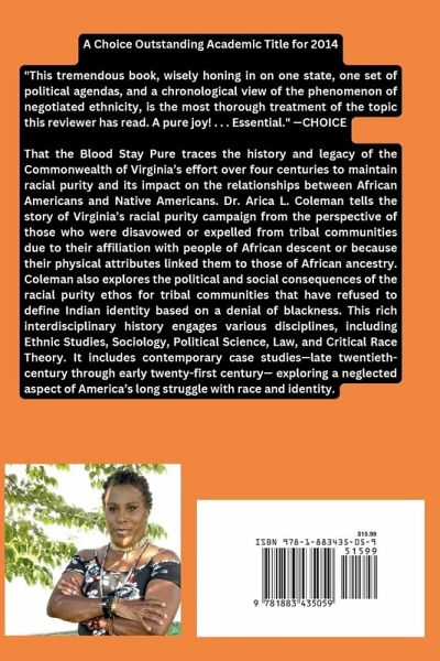 A Choice Outstanding Academic Title for 2014 "This tremendous book, wisely honing in on one state, one set of political agendas, and a chronological view of the phenomenon of negotiated ethnicity, is the most thorough treatment of the topic this reviewer has read. A pure joy! . . . Essential." -CHOICE That the Blood Stay Pure traces the history and legacy of the Commonwealth of Virginia's effort over four centuries to maintain racial purity and its impact on the relationships between African Americans and Native Americans. Dr. Arica L. Coleman tells the story of Virginia's racial purity campaign from the perspective of those who were disavowed or expelled from tribal communities due to their affiliation with people of African descent or because their physical attributes linked them to those of African ancestry. Coleman also explores the political and social consequences of the racial purity ethos for tribal communities that have refused to define Indian identity based on a denial of blackness. This rich interdisciplinary history engages various disciplines, including Ethnic Studies, Sociology, Political Science, Law, and Critical Race Theory. It includes contemporary case studies-late twentieth-century through early twenty-first century- exploring a neglected aspect of America's long struggle with race and identity.