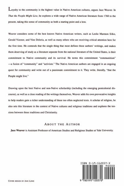 In this book Weaver looks at Native American literature in order to reflect on Native American values and spirituality. In 500 years of contact and colonization Christianity has been unable to displace traditional religious beliefs and practice, Weaver notes, and even among Indians who consider themselves Christian, traditional ways are often still important and honored. Many practise syncretism and religious dimorphism, religious pluralism that often produces communal tensions and misunderstandings that undermine the work of community organization. Weaver argues, however, that Native American literature speaks across these divisions and he offers a broad reading of several centuries of literature to develop the idea of "communitism"-a nexus of communal and communitarian values that is the bedrock of Native spirituality. His detailed analysis of a diverse set of writings-biographies, tribal histories, novels, plays, etc.-sheds fascinating light on an important and neglected aspect of American literature.