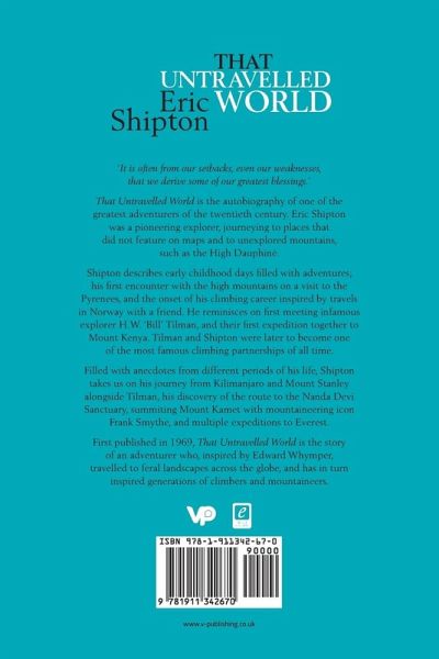 ‘It is often from our setbacks, even our weaknesses, that we derive some of our greatest blessings.’ That Untravelled World is the autobiography of one of the greatest adventurers of the twentieth century. Eric Shipton was a pioneering explorer, journeying to places that did not feature on maps and to unexplored mountains, such as the High Dauphiné. Shipton describes early childhood days filled with adventures; his first encounter with the high mountains on a visit to the Pyrenees, and the onset of his climbing career inspired by travels in Norway with a friend. He reminisces on first meeting infamous explorer H.W. ‘Bill’ Tilman, and their first expedition together to Mount Kenya. Tilman and Shipton were later to become one of the most famous climbing partnerships of all time. Filled with anecdotes from different periods of his life, Shipton takes us on his journey from Kilimanjaro and Mount Stanley alongside Tilman, his discovery of the route to the Nanda Devi Sanctuary, summiting Mount Kamet with mountaineering icon Frank Smythe, and multiple expeditions to Everest. First published in 1969, That Untravelled World is the story of an adventurer who, inspired by Edward Whymper, travelled to feral landscapes across the globe, and has in turn inspired generations of climbers and mountaineers.