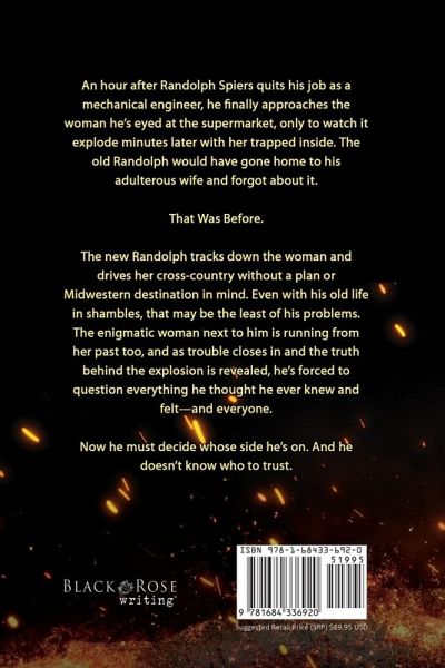 "Buckle up for a full-throttle thriller drawn with full-bodied characters." -Best Thrillers An hour after Randolph Spiers quits his job as a mechanical engineer, he finally approaches the woman he's eyed at the supermarket, only to watch it explode minutes later with her trapped inside. The old Randolph would have gone home to his adulterous wife and forgot about it. That Was Before. The new Randolph tracks down the woman and drives her cross-country without a plan or Midwestern destination in mind. Even with his old life in shambles, that may be the least of his problems. The enigmatic woman next to him is running from her past too, and as trouble closes in and the truth behind the explosion is revealed, he's forced to question everything he thought he ever knew and felt-and everyone. Now he must decide whose side he's on. And he doesn't know who to trust.