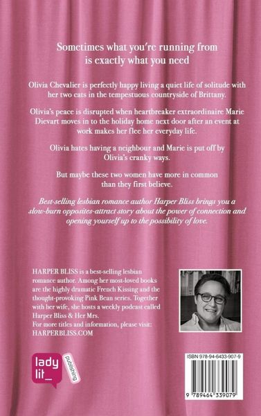 Sometimes what you're running from is exactly what you need Olivia Chevalier is perfectly happy living a quiet life of solitude with her two cats in the tempestuous countryside of Brittany. Olivia's peace is disrupted when heartbreaker extraordinaire Marie Dievart moves in to the holiday home next door after an event at work makes her flee her everyday life. Olivia hates having a neighbour and Marie is put off by Olivia's cranky ways. But maybe these two women have more in common than they first believe. Best-selling lesbian romance author Harper Bliss brings you a slow-burn opposites-attract story about the power of connection and opening yourself up to the possibility of love.