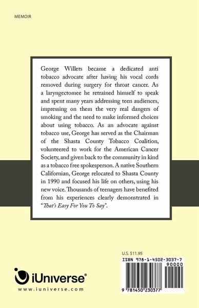 A graphic tale of addiction versus the deadly threat of cancer where noboy wins. If the addiction doesn't get you, the disease will. Willets writes from the heart when he describes his present circumstances "self inflicted. You will travel from the heights of elation to the depths of despair.